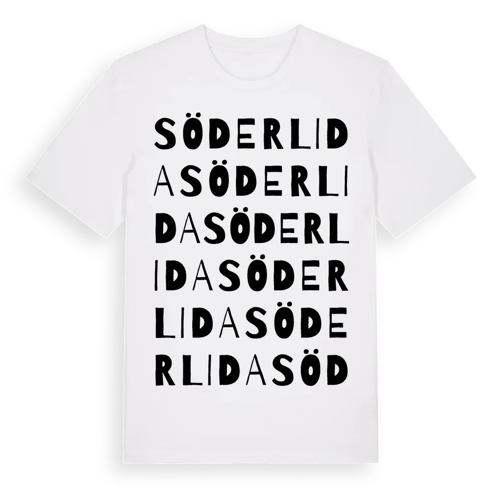 Söderlida ordlek t-shirt är inspirerad av Söderlida i Södermanlands län, Sverige. Tröjan är designad för dig som har en speciell koppling till platsen – oavsett om du bor här, har rötterna här eller bara älskar Söderlida.