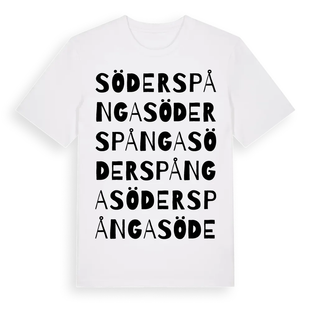 Söderspånga ordlek t-shirt är inspirerad av byn Söderspånga i Södermanlands län, Sverige. Tröjan är designad för dig som har en speciell koppling till platsen – oavsett om du bor här, har rötterna här eller bara älskar Söderspånga.