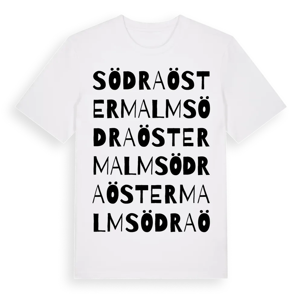 Södra Östermalm ordlek t-shirt är inspirerad av stadsdelen Södra Östermalm i Södermanlands län, Sverige. Tröjan är designad för dig som har en speciell koppling till platsen – oavsett om du bor här, har rötterna här eller bara älskar Södra Östermalm.