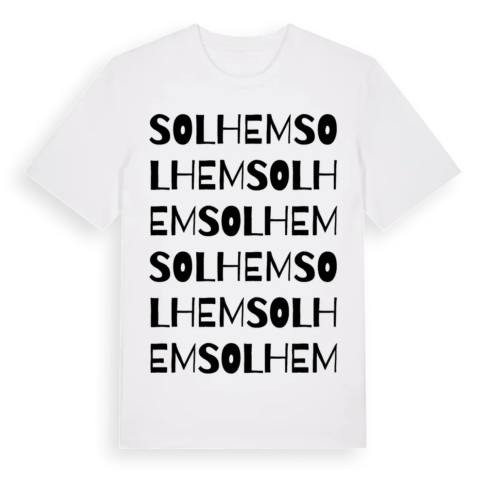 Solhem ordlek t-shirt är inspirerad av Solhem i Södermanlands län, Sverige. Tröjan är designad för dig som har en speciell koppling till platsen – oavsett om du bor här, har rötterna här eller bara älskar Solhem.