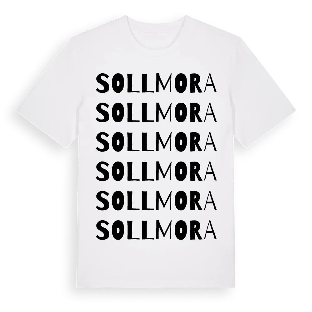 Sollmora ordlek t-shirt är inspirerad av Sollmora i Södermanlands län, Sverige. Tröjan är designad för dig som har en speciell koppling till platsen – oavsett om du bor här, har rötterna här eller bara älskar Sollmora.