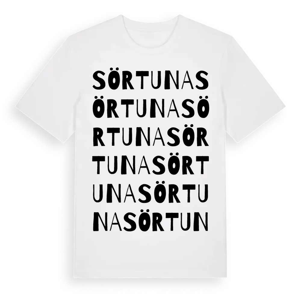 En ordlek byggd på Sörtunas namn. Subtilt och klurig – ett motiv som bara de som verkligen känner platsen fullt ut förstår. Premium bomull, unisex – från Sörtuna i Södermanlands län.
