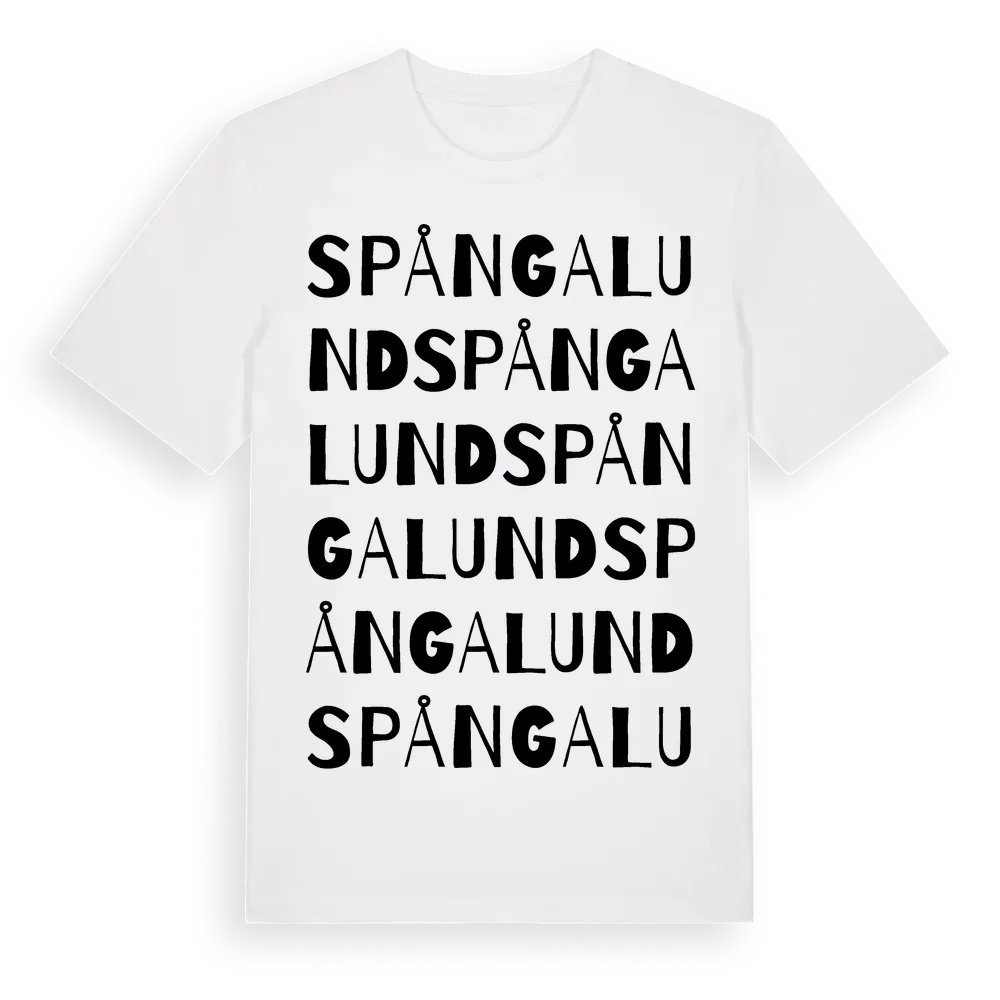 Spångalund ordlek t-shirt är inspirerad av Spångalund i Södermanlands län, Sverige. Tröjan är designad för dig som har en speciell koppling till platsen – oavsett om du bor här, har rötterna här eller bara älskar Spångalund.