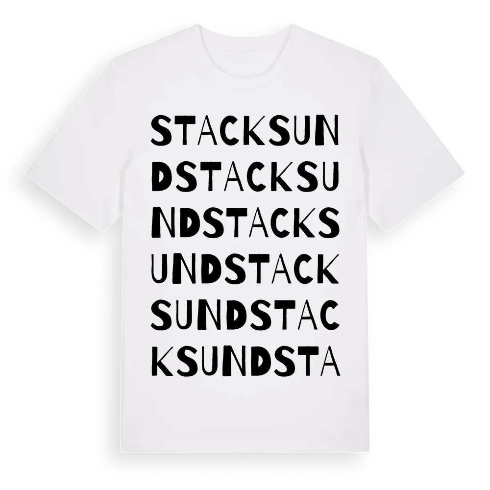 Stacksund ordlek t-shirt är inspirerad av Stacksund i Södermanlands län, Sverige. Tröjan är designad för dig som har en speciell koppling till platsen – oavsett om du bor här, har rötterna här eller bara älskar Stacksund.
