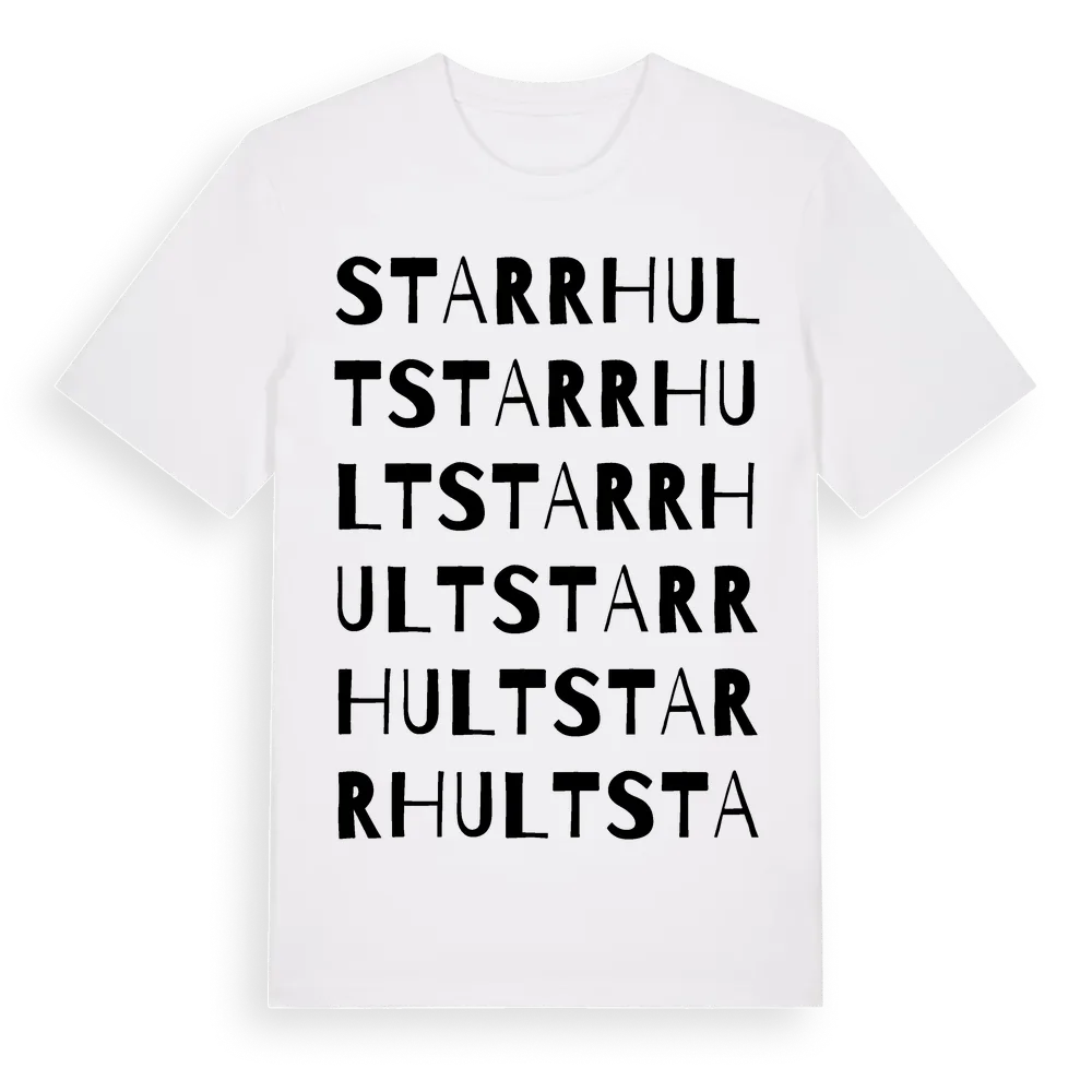 Starrhult ordlek t-shirt är inspirerad av Starrhult i Södermanlands län, Sverige. Tröjan är designad för dig som har en speciell koppling till platsen – oavsett om du bor här, har rötterna här eller bara älskar Starrhult.