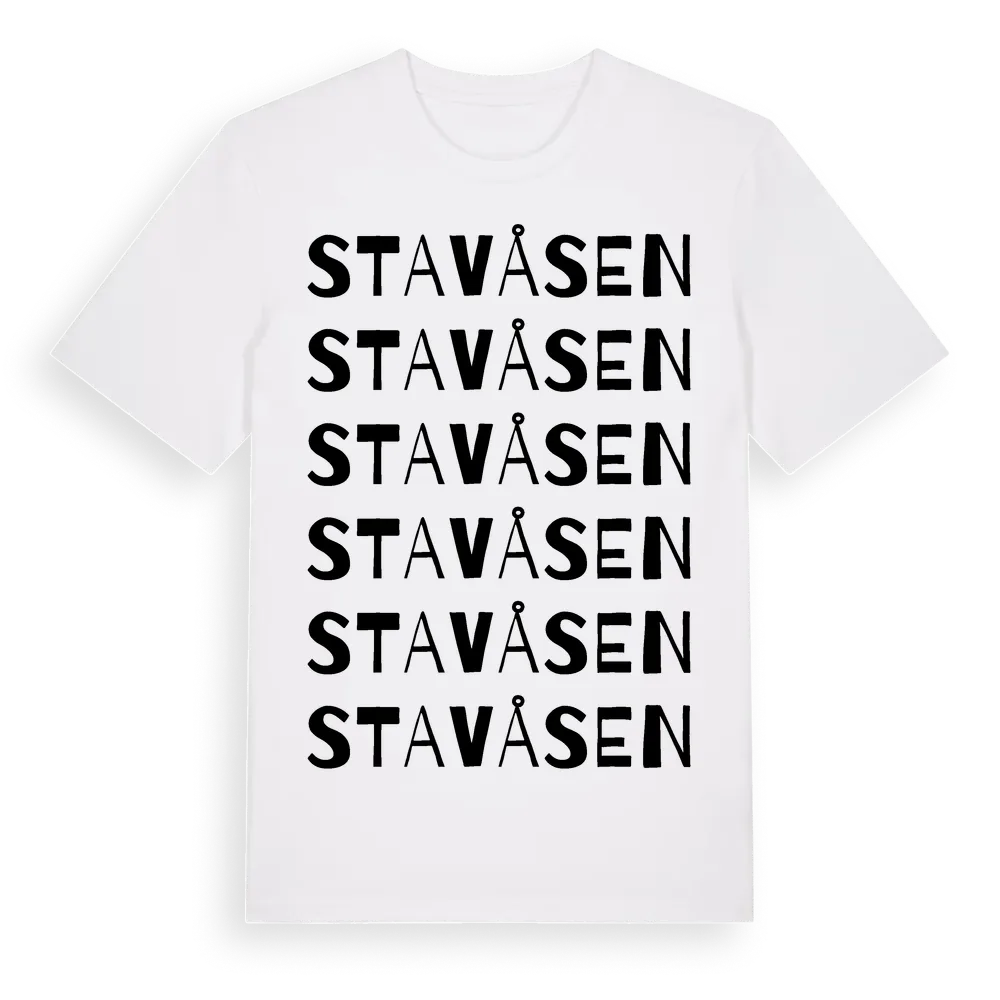 Stavåsen ordlek t-shirt är inspirerad av Stavåsen i Södermanlands län, Sverige. Tröjan är designad för dig som har en speciell koppling till platsen – oavsett om du bor här, har rötterna här eller bara älskar Stavåsen.