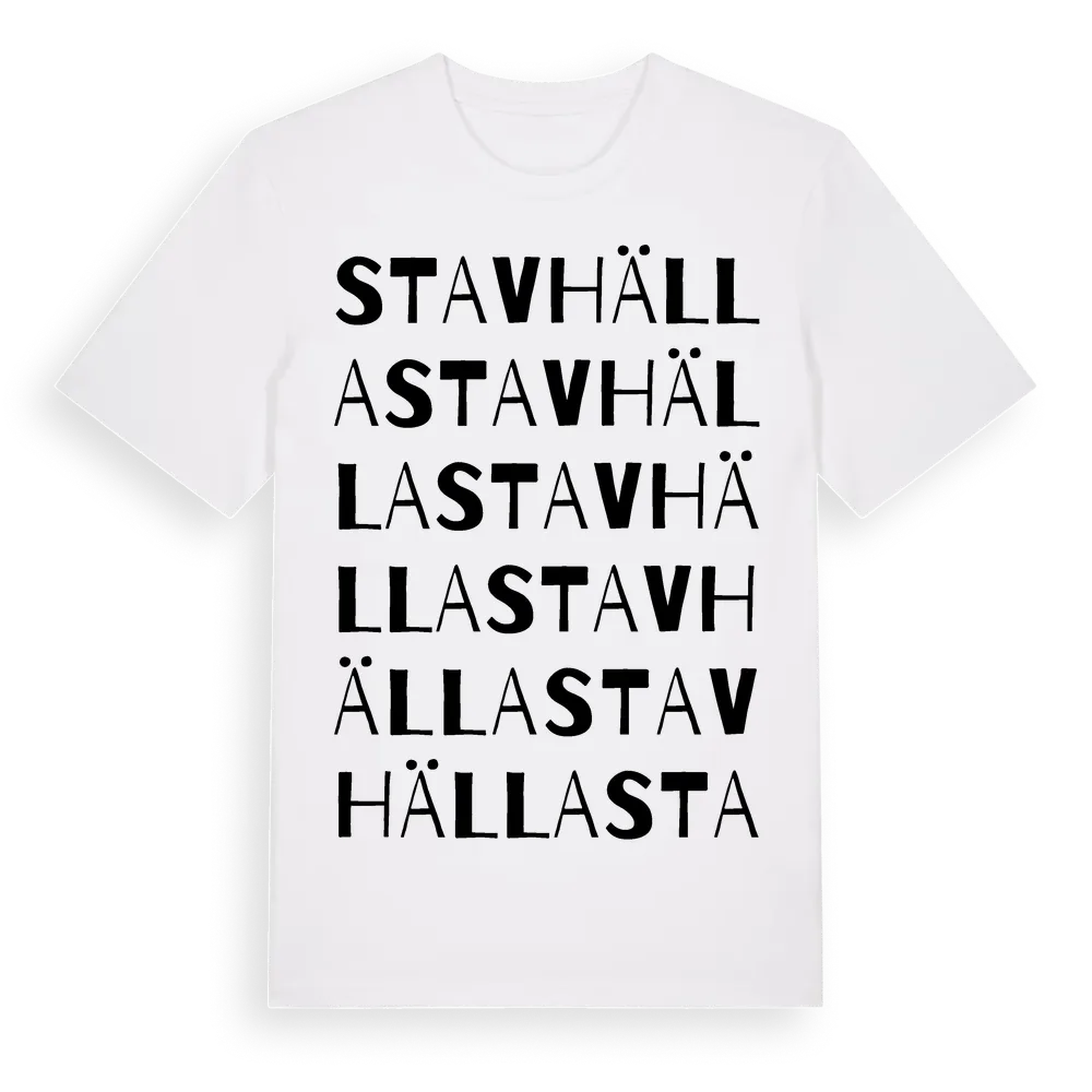 Stavhälla ordlek t-shirt är inspirerad av Stavhälla i Södermanlands län, Sverige. Tröjan är designad för dig som har en speciell koppling till platsen – oavsett om du bor här, har rötterna här eller bara älskar Stavhälla.