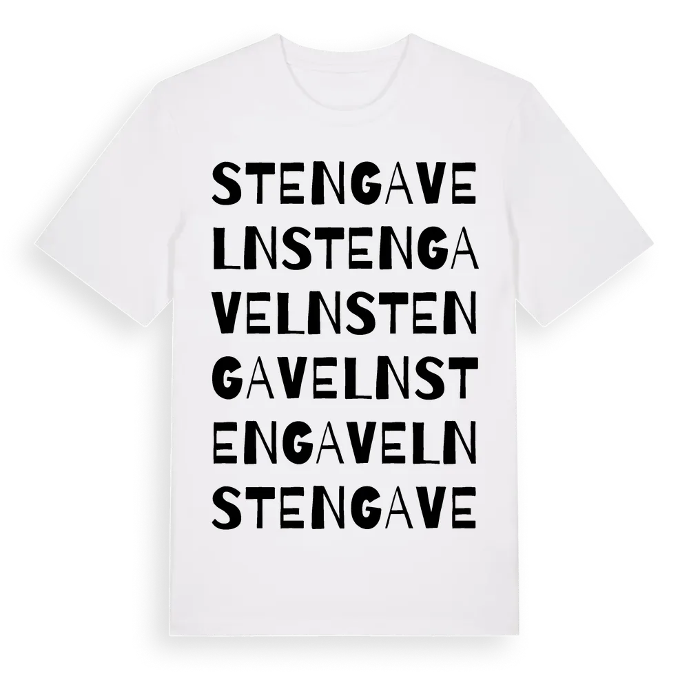 Stengaveln ordlek t-shirt är inspirerad av Stengaveln i Södermanlands län, Sverige. Tröjan är designad för dig som har en speciell koppling till platsen – oavsett om du bor här, har rötterna här eller bara älskar Stengaveln.