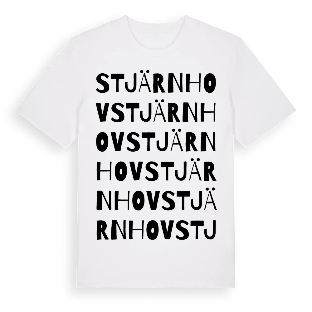 Stjärnhov ordlek t-shirt är inspirerad av byn Stjärnhov i Södermanlands län, Sverige. Tröjan är designad för dig som har en speciell koppling till platsen – oavsett om du bor här, har rötterna här eller bara älskar Stjärnhov.
