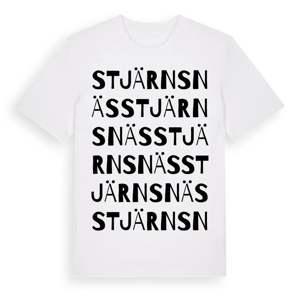 Stjärnsnäs ordlek t-shirt är inspirerad av byn Stjärnsnäs i Södermanlands län, Sverige. Tröjan är designad för dig som har en speciell koppling till platsen – oavsett om du bor här, har rötterna här eller bara älskar Stjärnsnäs.