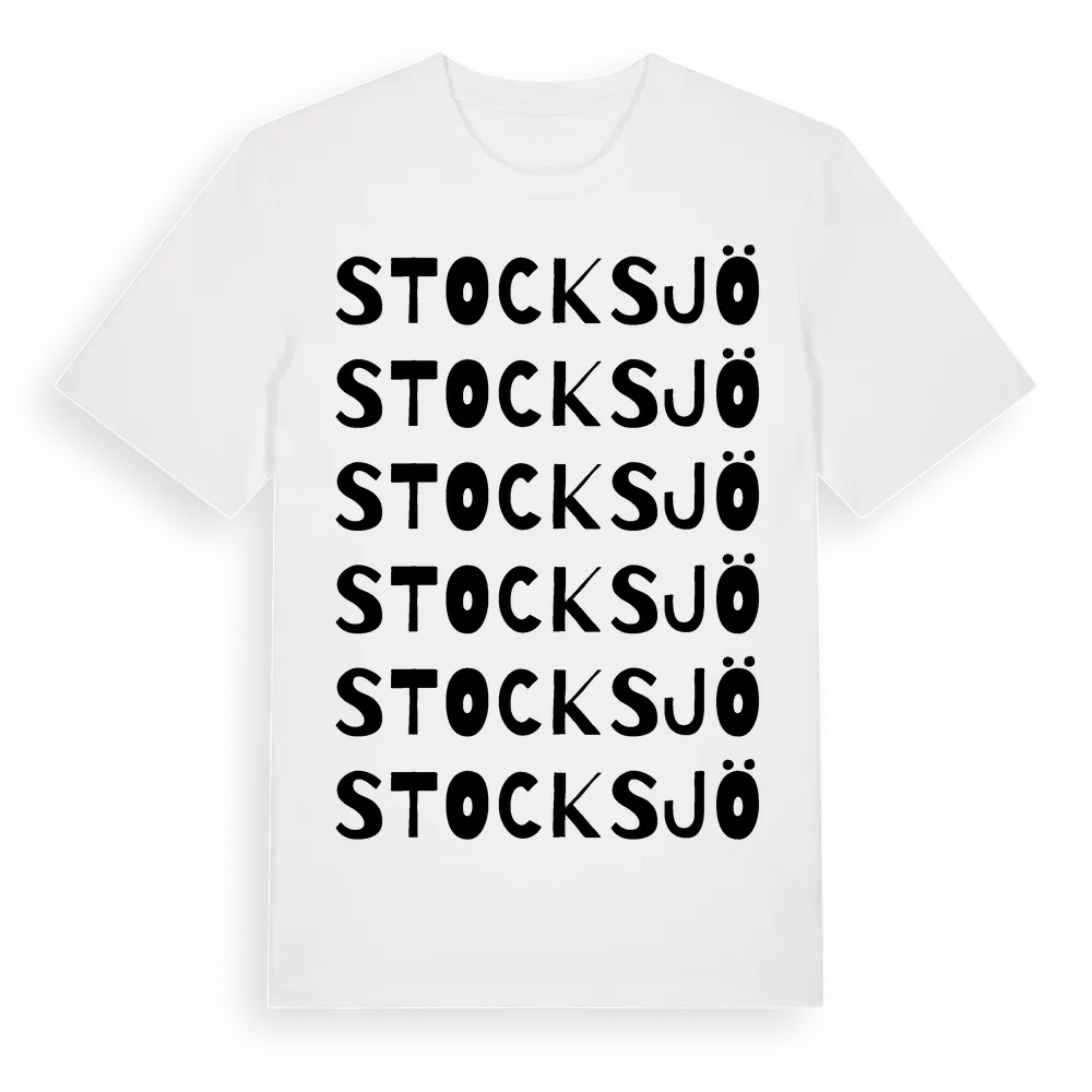 Stocksjö ordlek t-shirt är inspirerad av Stocksjö i Södermanlands län, Sverige. Tröjan är designad för dig som har en speciell koppling till platsen – oavsett om du bor här, har rötterna här eller bara älskar Stocksjö.