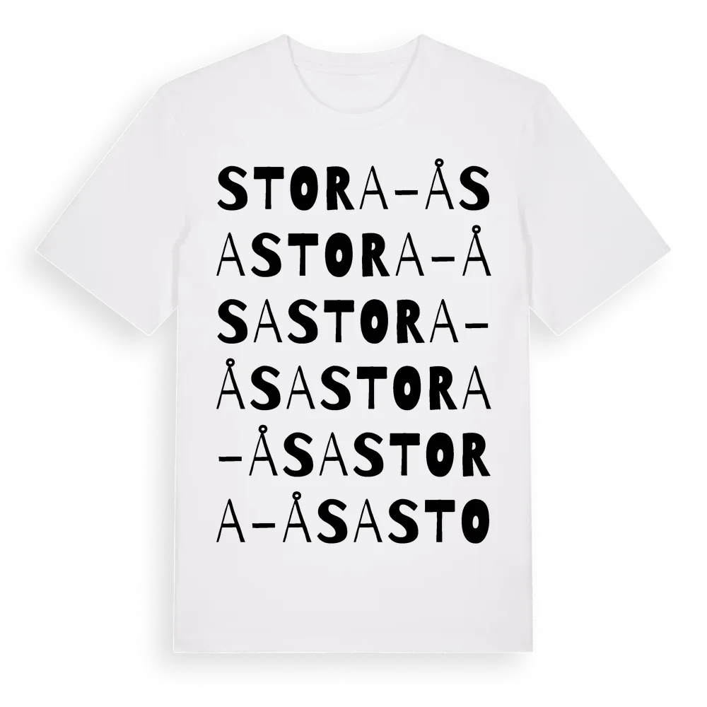 Stora-Åsa ordlek t-shirt är inspirerad av Stora-Åsa i Södermanlands län, Sverige. Tröjan är designad för dig som har en speciell koppling till platsen – oavsett om du bor här, har rötterna här eller bara älskar Stora-Åsa.