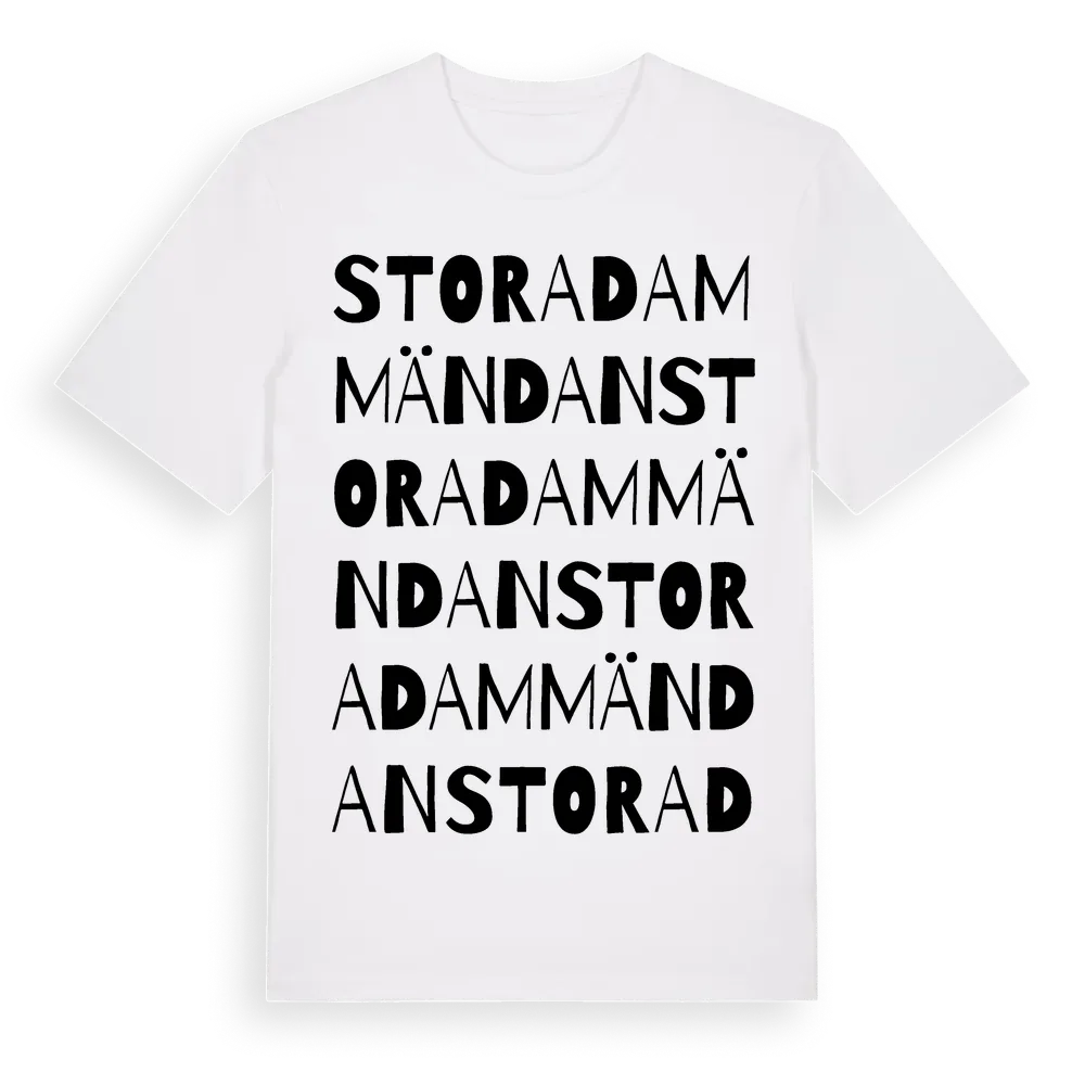 Stora Dammändan ordlek t-shirt är inspirerad av Stora Dammändan i Södermanlands län, Sverige. Tröjan är designad för dig som har en speciell koppling till platsen – oavsett om du bor här, har rötterna här eller bara älskar Stora Dammändan.