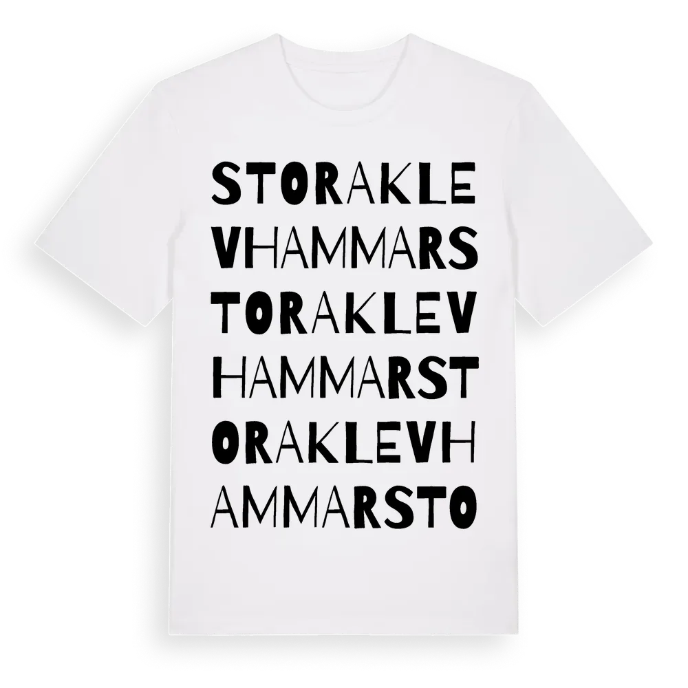 Stora Klevhammar ordlek t-shirt är inspirerad av Stora Klevhammar i Södermanlands län, Sverige. Tröjan är designad för dig som har en speciell koppling till platsen – oavsett om du bor här, har rötterna här eller bara älskar Stora Klevhammar.