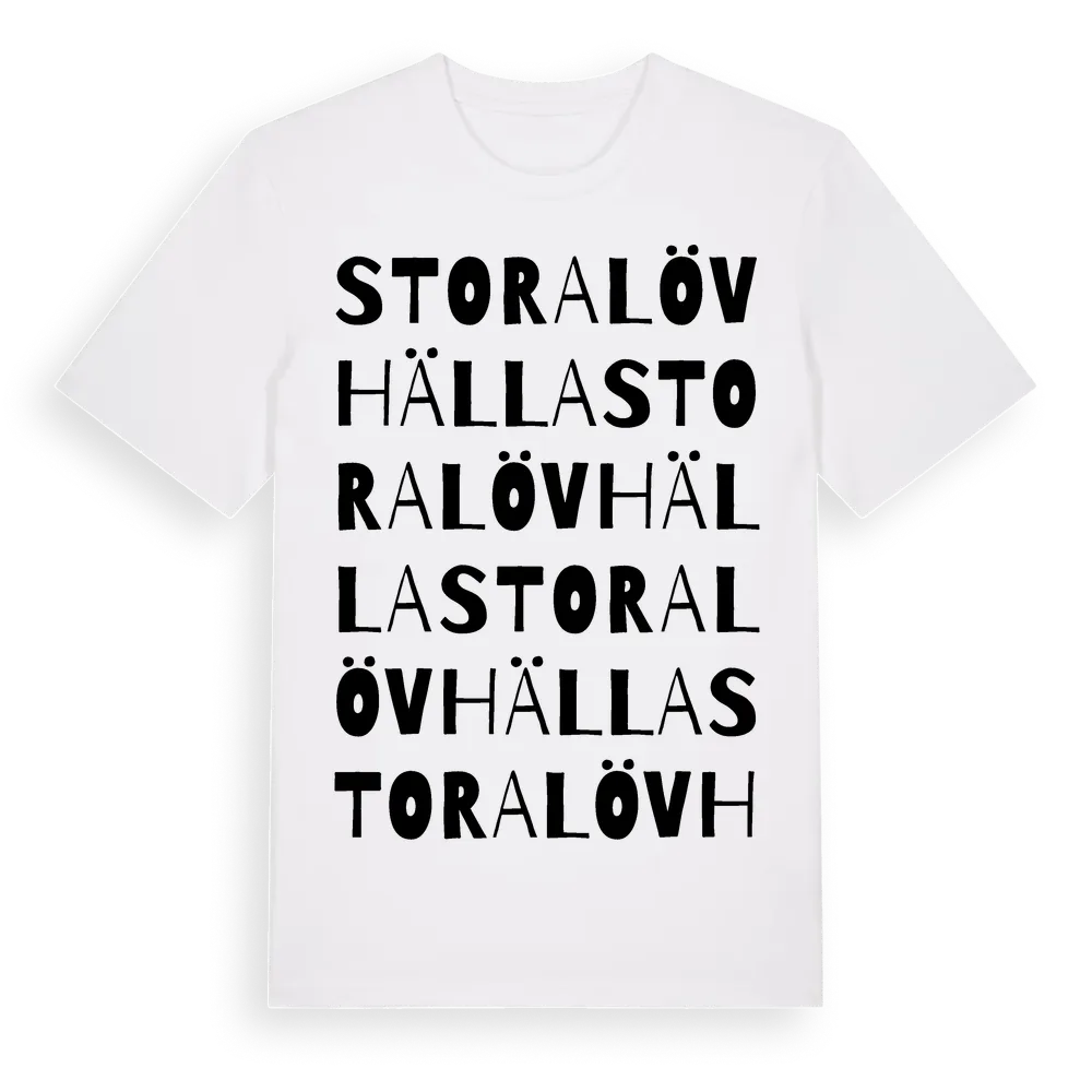 Stora Lövhälla ordlek t-shirt är inspirerad av Stora Lövhälla i Södermanlands län, Sverige. Tröjan är designad för dig som har en speciell koppling till platsen – oavsett om du bor här, har rötterna här eller bara älskar Stora Lövhälla.
