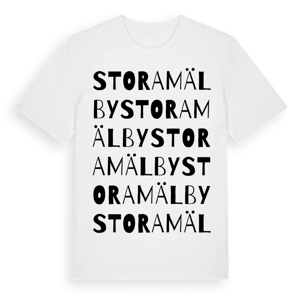 Stora Mälby ordlek t-shirt är inspirerad av Stora Mälby i Södermanlands län, Sverige. Tröjan är designad för dig som har en speciell koppling till platsen – oavsett om du bor här, har rötterna här eller bara älskar Stora Mälby.