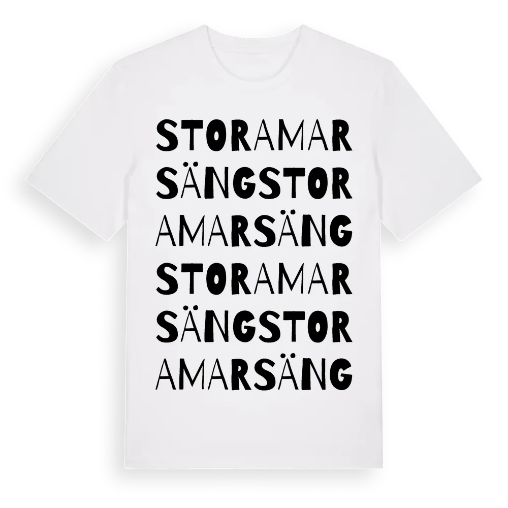 Stora Marsäng ordlek t-shirt är inspirerad av byn Stora Marsäng i Södermanlands län, Sverige. Tröjan är designad för dig som har en speciell koppling till platsen – oavsett om du bor här, har rötterna här eller bara älskar Stora Marsäng.
