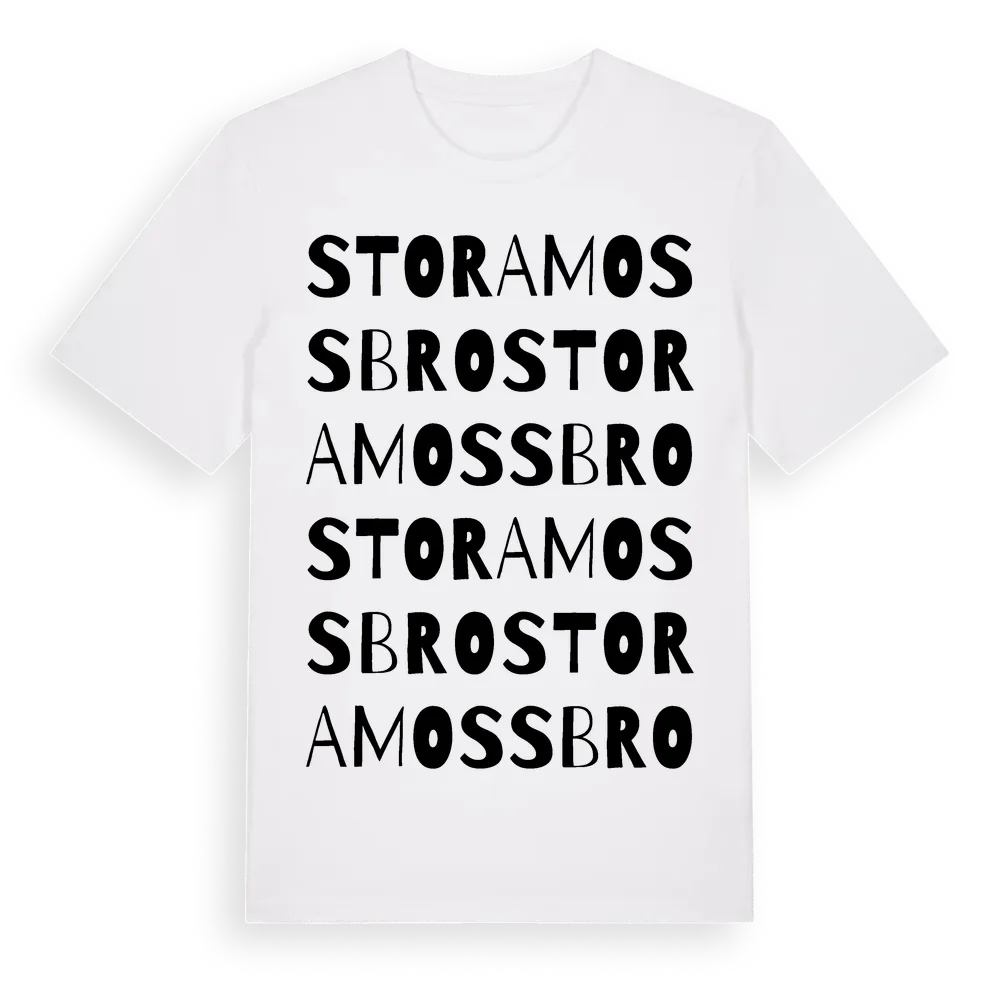 Stora Mossbro ordlek t-shirt är inspirerad av Stora Mossbro i Södermanlands län, Sverige. Tröjan är designad för dig som har en speciell koppling till platsen – oavsett om du bor här, har rötterna här eller bara älskar Stora Mossbro.