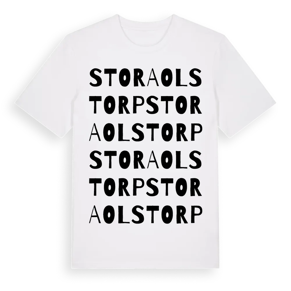En ordlek byggd på Stora Olstorps namn. Subtilt och klurig – ett motiv som bara de som verkligen känner platsen fullt ut förstår. Premium bomull, unisex – från Stora Olstorp i Södermanlands län.