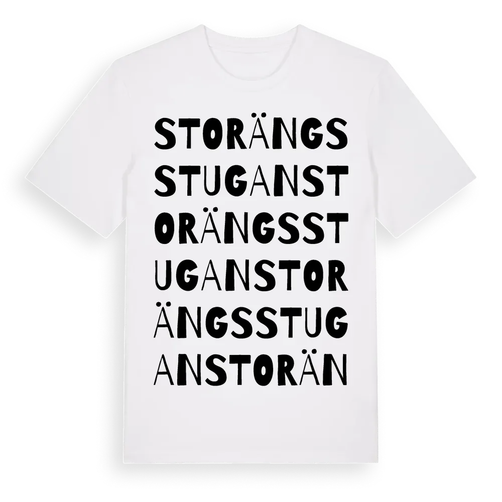 Storängsstugan ordlek t-shirt är inspirerad av Storängsstugan i Södermanlands län, Sverige. Tröjan är designad för dig som har en speciell koppling till platsen – oavsett om du bor här, har rötterna här eller bara älskar Storängsstugan.