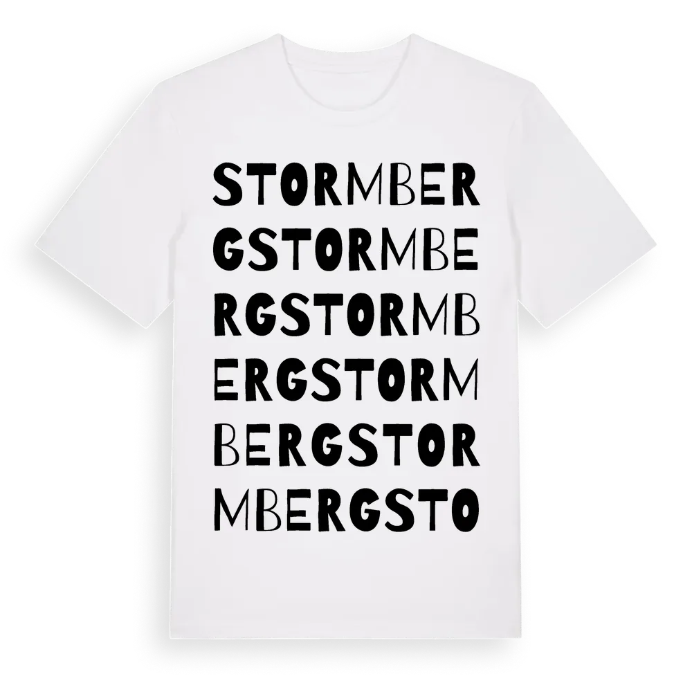Stormberg ordlek t-shirt är inspirerad av Stormberg i Södermanlands län, Sverige. Tröjan är designad för dig som har en speciell koppling till platsen – oavsett om du bor här, har rötterna här eller bara älskar Stormberg.
