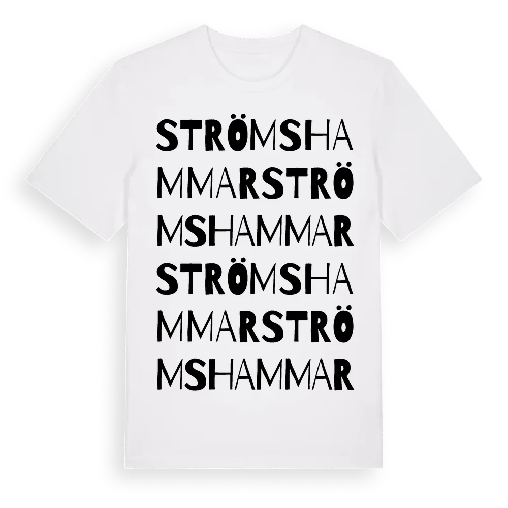 Strömshammar ordlek t-shirt är inspirerad av byn Strömshammar i Södermanlands län, Sverige. Tröjan är designad för dig som har en speciell koppling till platsen – oavsett om du bor här, har rötterna här eller bara älskar Strömshammar.