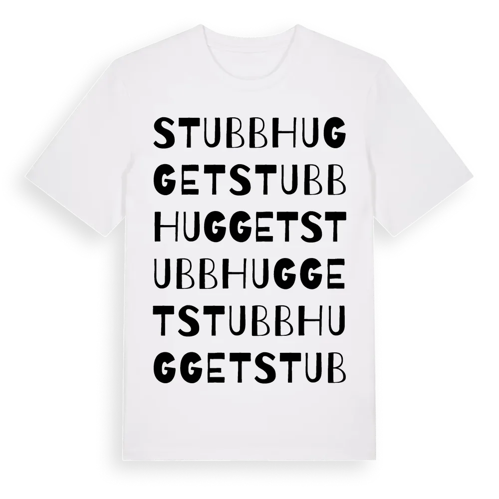 Stubbhugget ordlek t-shirt är inspirerad av Stubbhugget i Södermanlands län, Sverige. Tröjan är designad för dig som har en speciell koppling till platsen – oavsett om du bor här, har rötterna här eller bara älskar Stubbhugget.