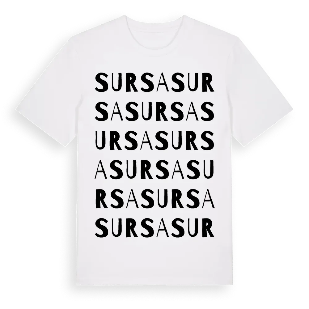 Sursa ordlek t-shirt är inspirerad av byn Sursa i Södermanlands län, Sverige. Tröjan är designad för dig som har en speciell koppling till platsen – oavsett om du bor här, har rötterna här eller bara älskar Sursa.