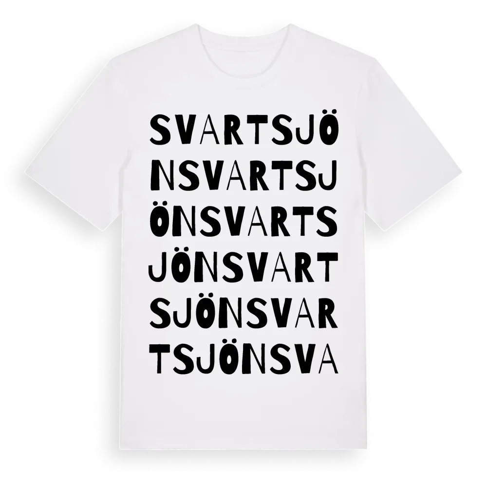 Svartsjön ordlek t-shirt är inspirerad av Svartsjön i Södermanlands län, Sverige. Tröjan är designad för dig som har en speciell koppling till platsen – oavsett om du bor här, har rötterna här eller bara älskar Svartsjön.