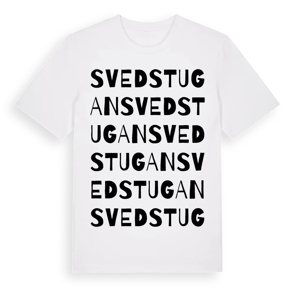 Svedstugan ordlek t-shirt är inspirerad av Svedstugan i Södermanlands län, Sverige. Tröjan är designad för dig som har en speciell koppling till platsen – oavsett om du bor här, har rötterna här eller bara älskar Svedstugan.