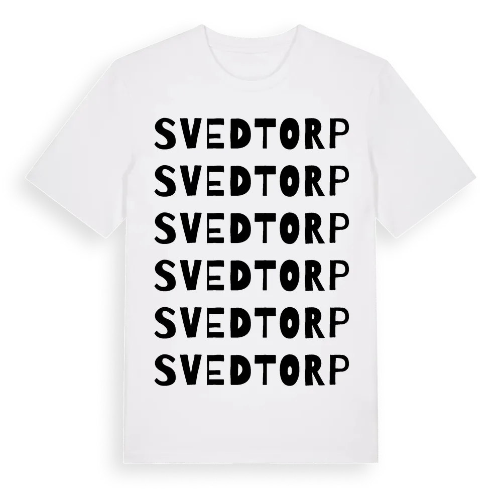 Svedtorp ordlek t-shirt är inspirerad av Svedtorp i Södermanlands län, Sverige. Tröjan är designad för dig som har en speciell koppling till platsen – oavsett om du bor här, har rötterna här eller bara älskar Svedtorp.