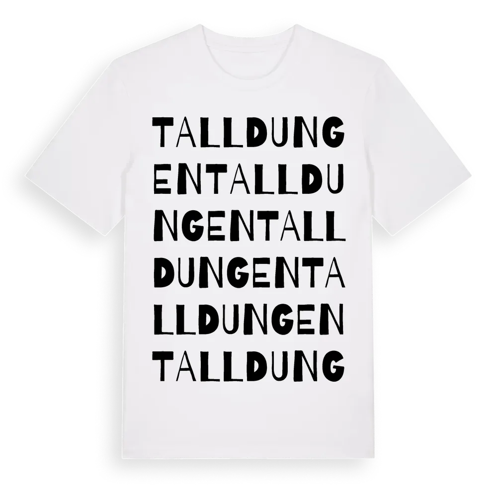 Talldungen ordlek t-shirt är inspirerad av Talldungen i Södermanlands län, Sverige. Tröjan är designad för dig som har en speciell koppling till platsen – oavsett om du bor här, har rötterna här eller bara älskar Talldungen.