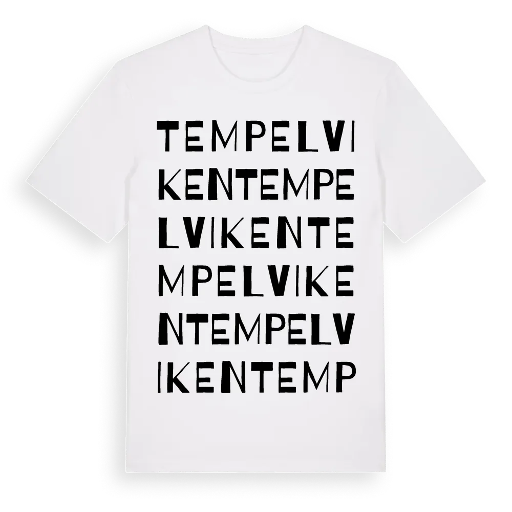 En ordlek byggd på Tempelvikens namn. Subtilt och klurig – ett motiv som bara de som verkligen känner platsen fullt ut förstår. Premium bomull, unisex – från Tempelviken i Södermanlands län.