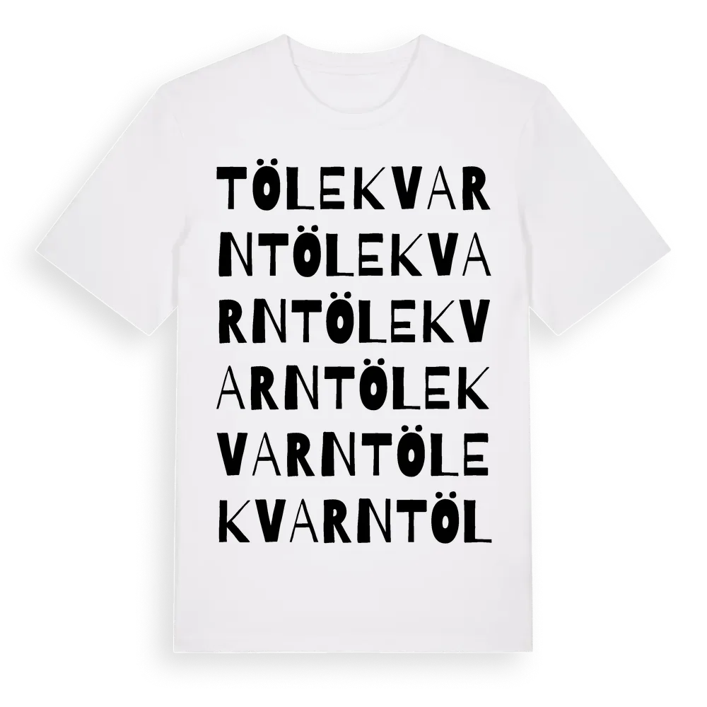 Töle Kvarn ordlek t-shirt är inspirerad av byn Töle Kvarn i Södermanlands län, Sverige. Tröjan är designad för dig som har en speciell koppling till platsen – oavsett om du bor här, har rötterna här eller bara älskar Töle Kvarn.