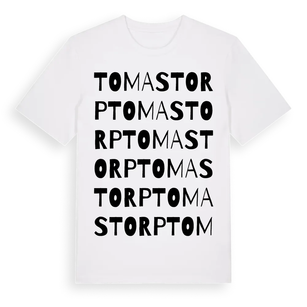 Tomastorp ordlek t-shirt är inspirerad av byn Tomastorp i Södermanlands län, Sverige. Tröjan är designad för dig som har en speciell koppling till platsen – oavsett om du bor här, har rötterna här eller bara älskar Tomastorp.