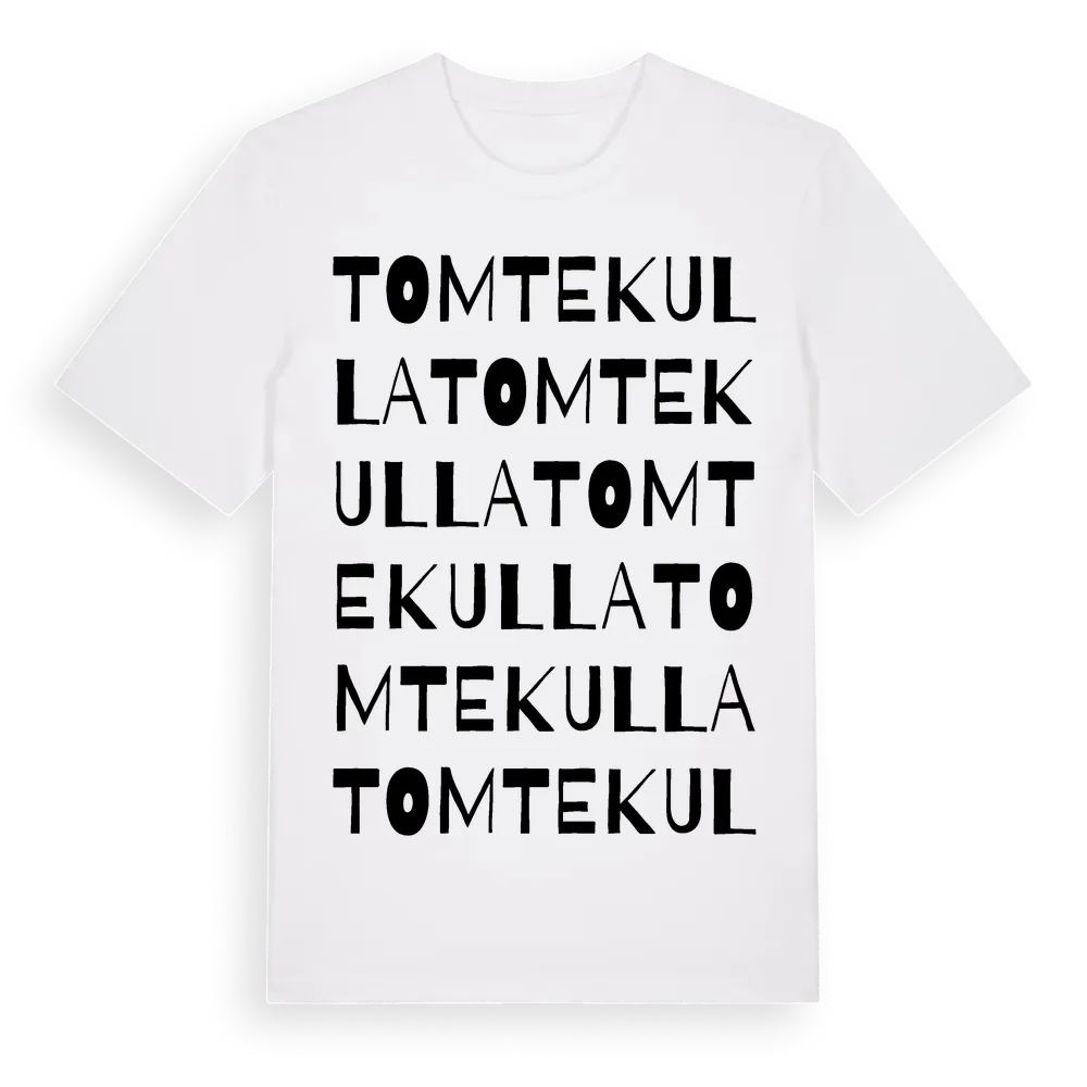 Tomtekulla ordlek t-shirt är inspirerad av Tomtekulla i Södermanlands län, Sverige. Tröjan är designad för dig som har en speciell koppling till platsen – oavsett om du bor här, har rötterna här eller bara älskar Tomtekulla.