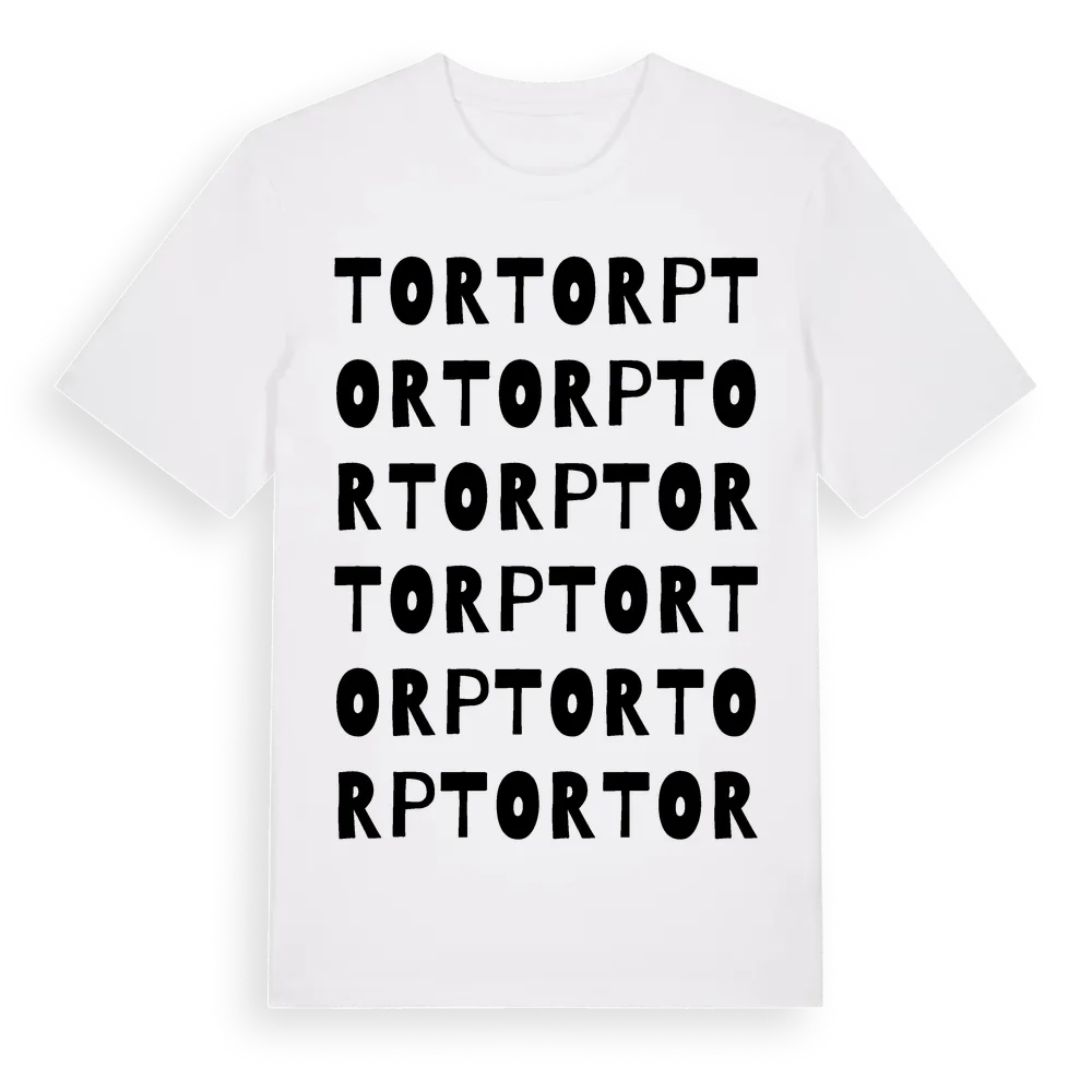 En ordlek byggd på Tortorps namn. Subtilt och klurig – ett motiv som bara de som verkligen känner platsen fullt ut förstår. Premium bomull, unisex – från Tortorp i Södermanlands län.
