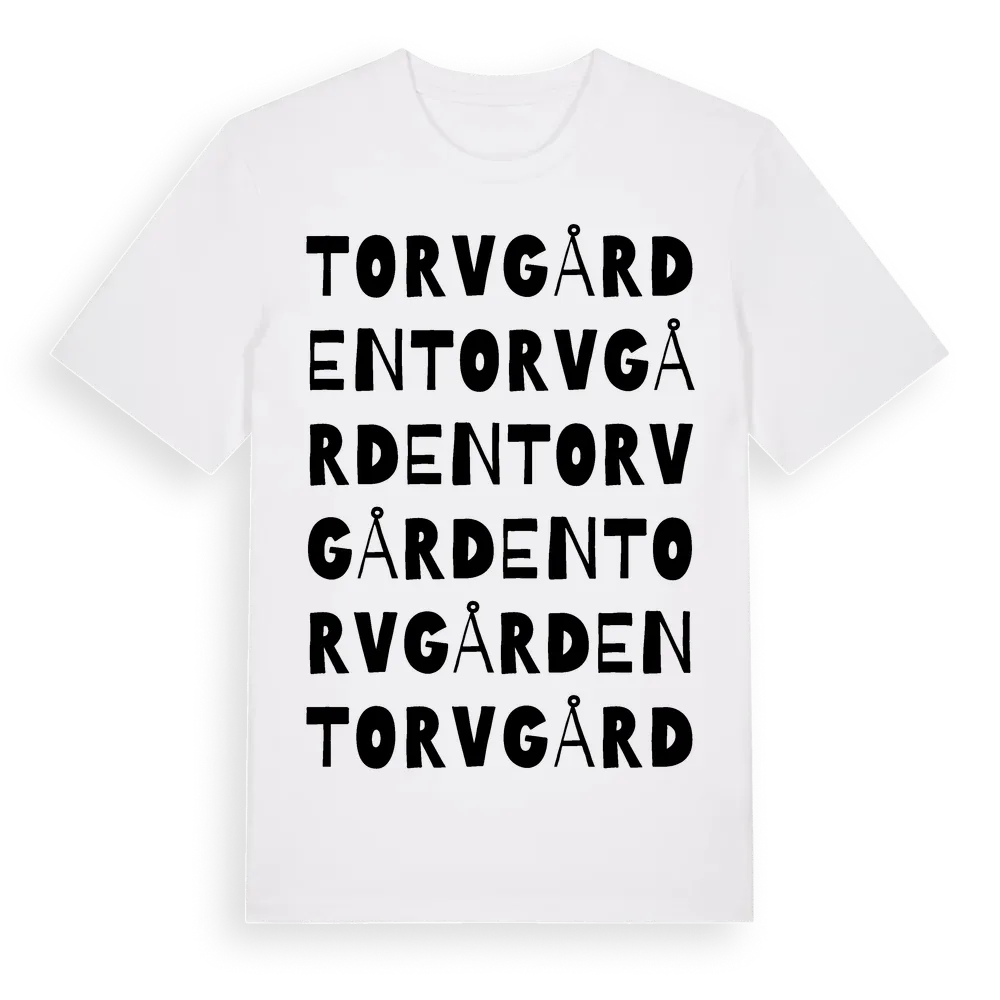 Torvgården ordlek t-shirt är inspirerad av Torvgården i Södermanlands län, Sverige. Tröjan är designad för dig som har en speciell koppling till platsen – oavsett om du bor här, har rötterna här eller bara älskar Torvgården.