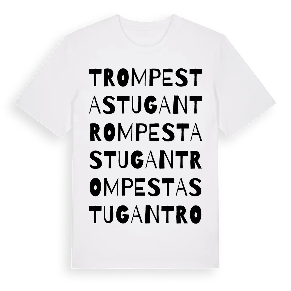 Trompestastugan ordlek t-shirt är inspirerad av Trompestastugan i Södermanlands län, Sverige. Tröjan är designad för dig som har en speciell koppling till platsen – oavsett om du bor här, har rötterna här eller bara älskar Trompestastugan.