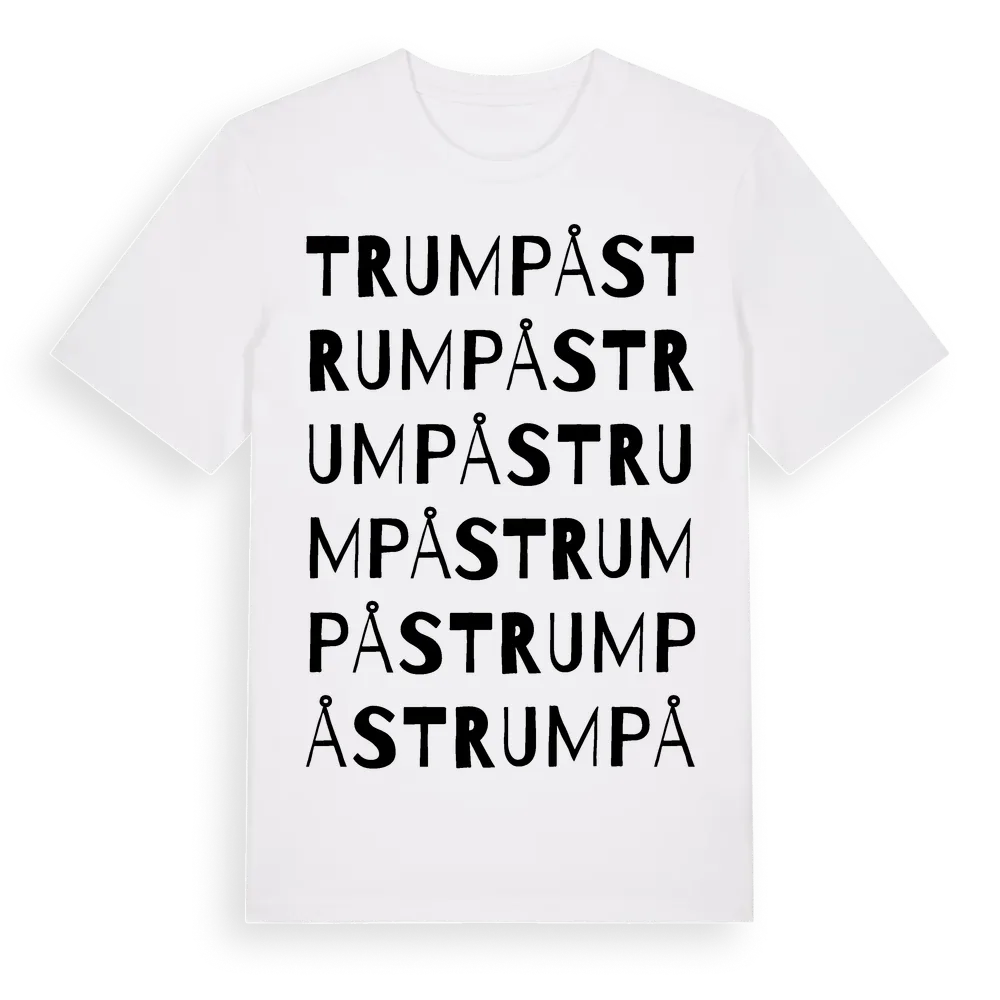 Trumpås ordlek t-shirt är inspirerad av Trumpås i Södermanlands län, Sverige. Tröjan är designad för dig som har en speciell koppling till platsen – oavsett om du bor här, har rötterna här eller bara älskar Trumpås.