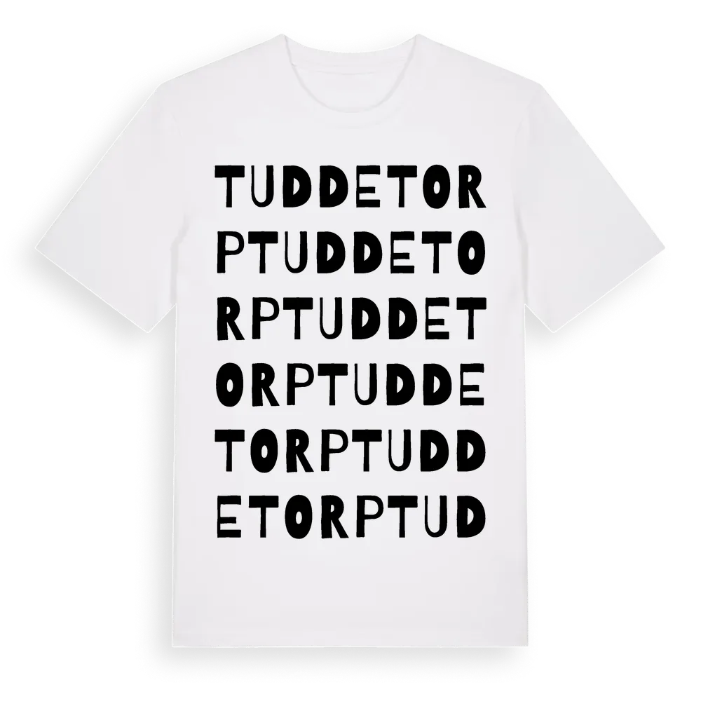 Tuddetorp ordlek t-shirt är inspirerad av Tuddetorp i Södermanlands län, Sverige. Tröjan är designad för dig som har en speciell koppling till platsen – oavsett om du bor här, har rötterna här eller bara älskar Tuddetorp.