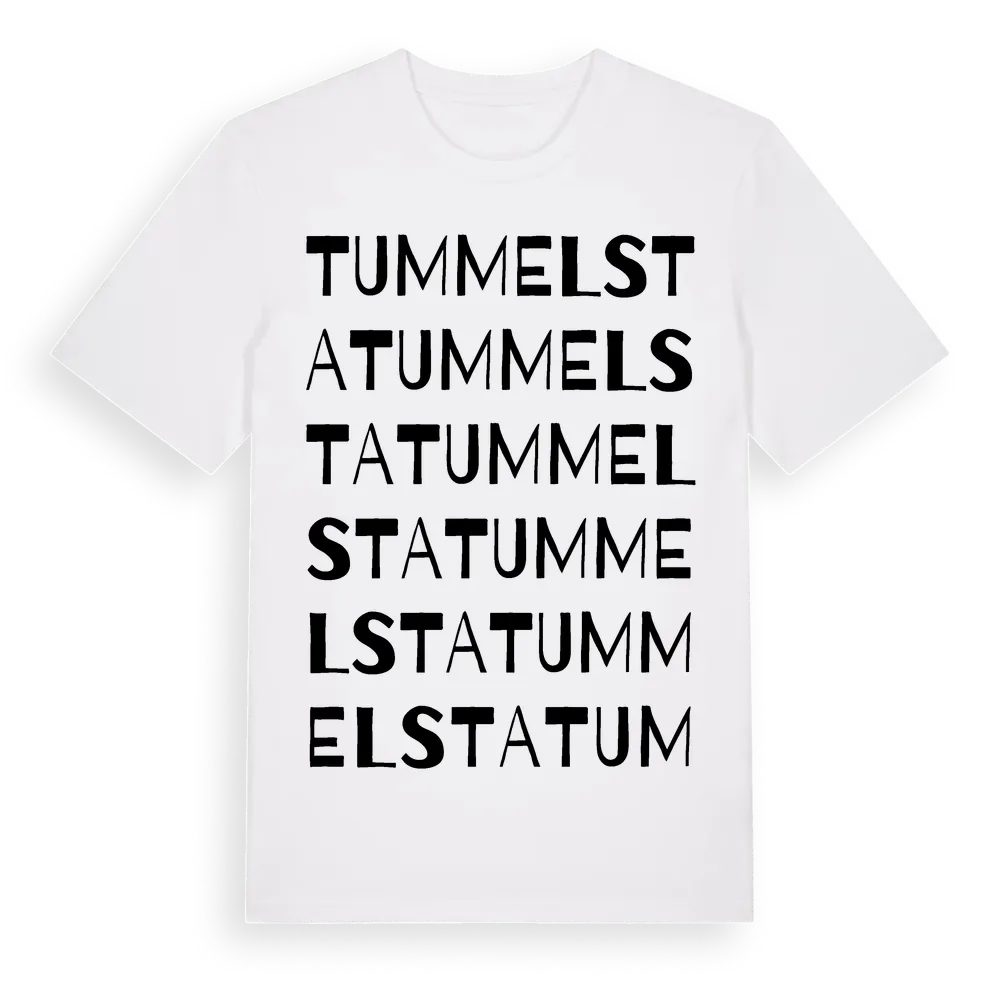 Tummelsta ordlek t-shirt är inspirerad av byn Tummelsta i Södermanlands län, Sverige. Tröjan är designad för dig som har en speciell koppling till platsen – oavsett om du bor här, har rötterna här eller bara älskar Tummelsta.