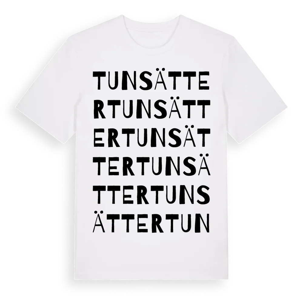 Tunsätter ordlek t-shirt är inspirerad av Tunsätter i Södermanlands län, Sverige. Tröjan är designad för dig som har en speciell koppling till platsen – oavsett om du bor här, har rötterna här eller bara älskar Tunsätter.