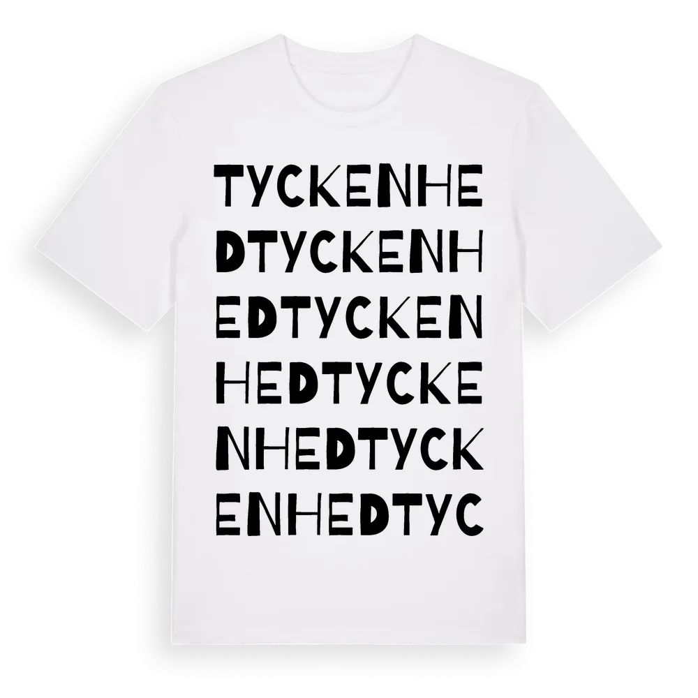 Tyckenhed ordlek t-shirt är inspirerad av byn Tyckenhed i Södermanlands län, Sverige. Tröjan är designad för dig som har en speciell koppling till platsen – oavsett om du bor här, har rötterna här eller bara älskar Tyckenhed.