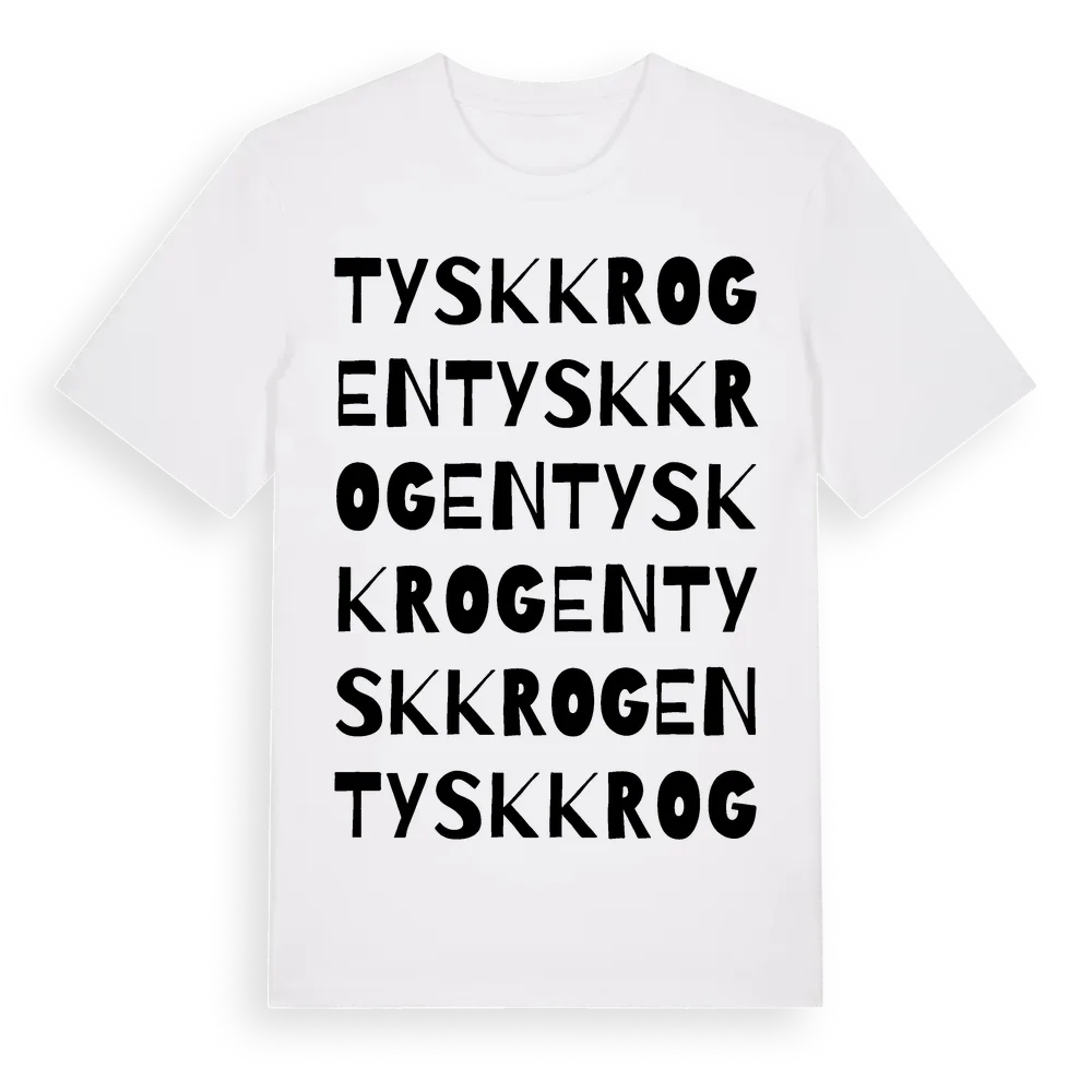 Tyskkrogen ordlek t-shirt är inspirerad av Tyskkrogen i Södermanlands län, Sverige. Tröjan är designad för dig som har en speciell koppling till platsen – oavsett om du bor här, har rötterna här eller bara älskar Tyskkrogen.