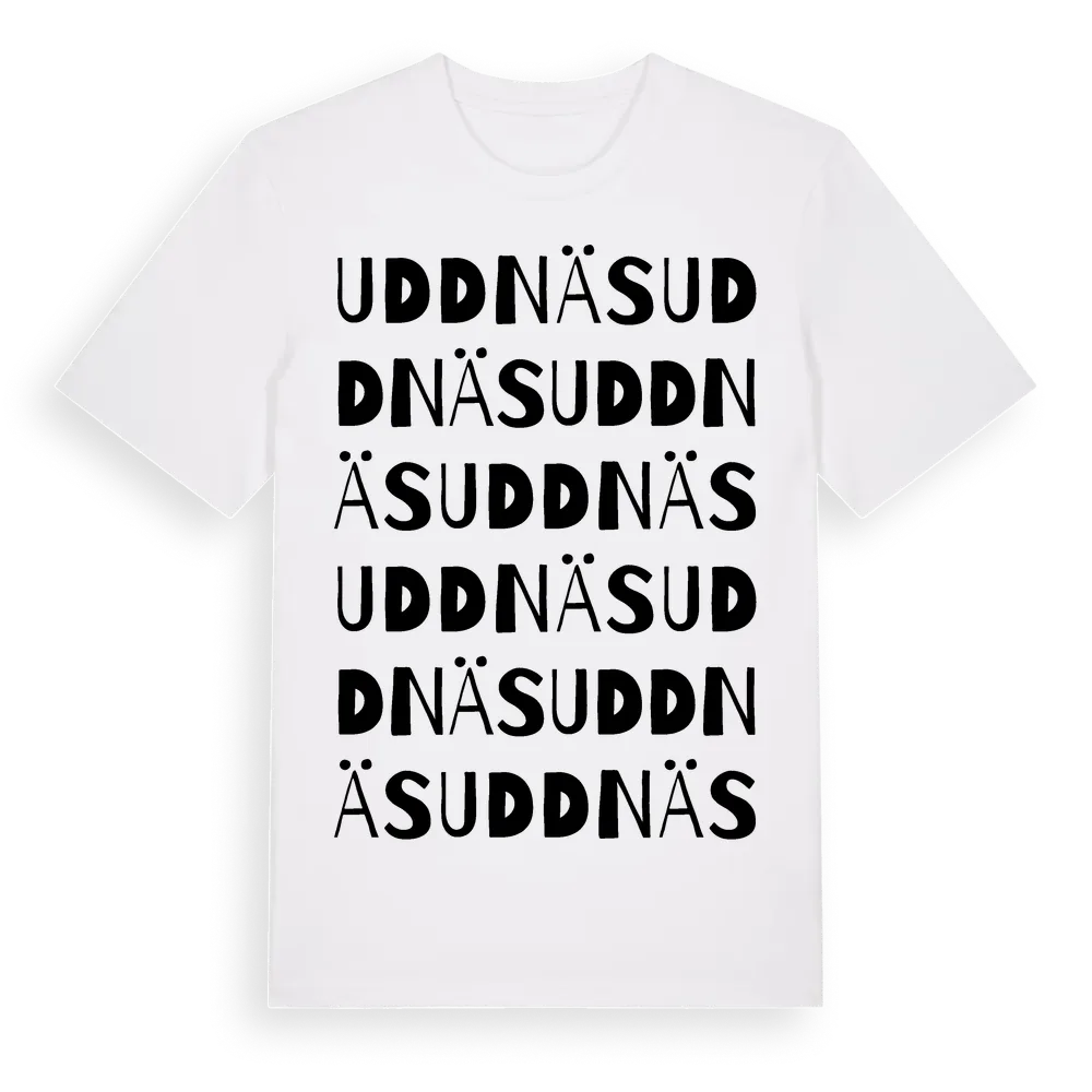 Uddnäs ordlek t-shirt är inspirerad av Uddnäs i Södermanlands län, Sverige. Tröjan är designad för dig som har en speciell koppling till platsen – oavsett om du bor här, har rötterna här eller bara älskar Uddnäs.