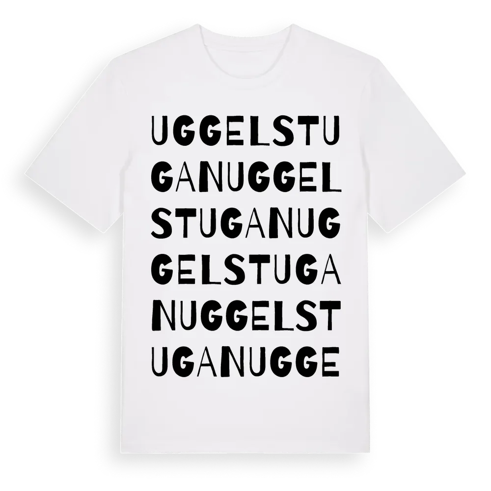 Uggelstugan ordlek t-shirt är inspirerad av Uggelstugan i Södermanlands län, Sverige. Tröjan är designad för dig som har en speciell koppling till platsen – oavsett om du bor här, har rötterna här eller bara älskar Uggelstugan.