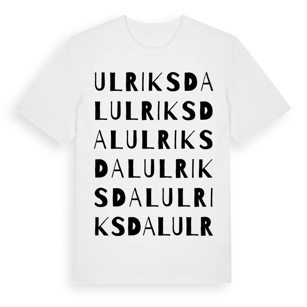 Ulriksdal ordlek t-shirt är inspirerad av Ulriksdal i Södermanlands län, Sverige. Tröjan är designad för dig som har en speciell koppling till platsen – oavsett om du bor här, har rötterna här eller bara älskar Ulriksdal.