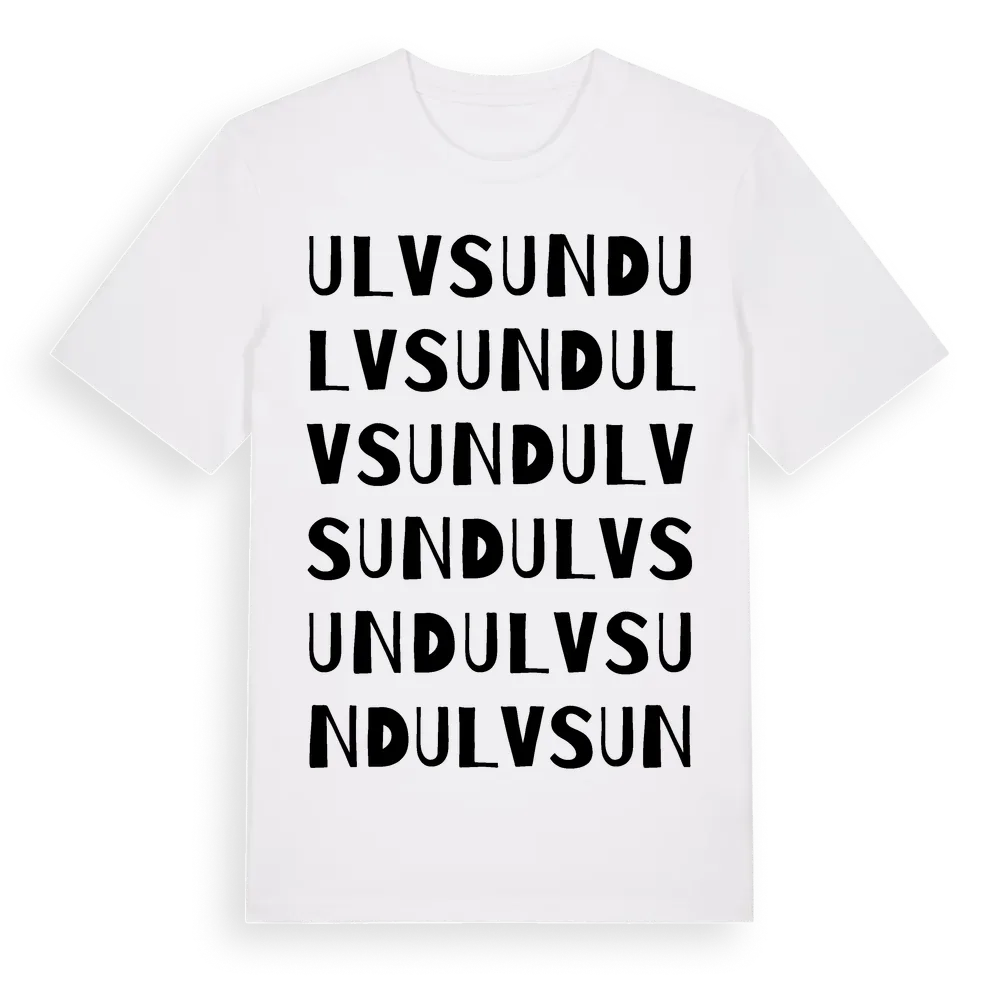 Ulvsund ordlek t-shirt är inspirerad av byn Ulvsund i Södermanlands län, Sverige. Tröjan är designad för dig som har en speciell koppling till platsen – oavsett om du bor här, har rötterna här eller bara älskar Ulvsund.