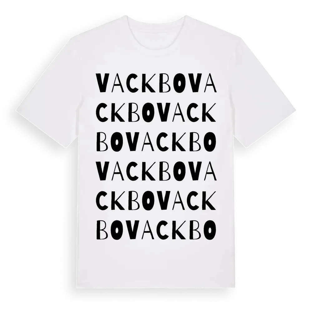Vackbo ordlek t-shirt är inspirerad av Vackbo i Södermanlands län, Sverige. Tröjan är designad för dig som har en speciell koppling till platsen – oavsett om du bor här, har rötterna här eller bara älskar Vackbo.